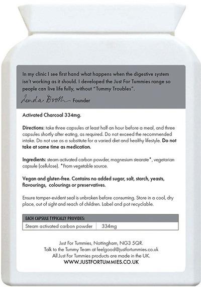 Just For Tummies pure Activated Charcoal Capsules can be used every day in the treatment of diarrhoea, flatulence (wind/gas), irritable bowel syndrome, heartburn, indigestion, constipation and various other common digestive complaints.