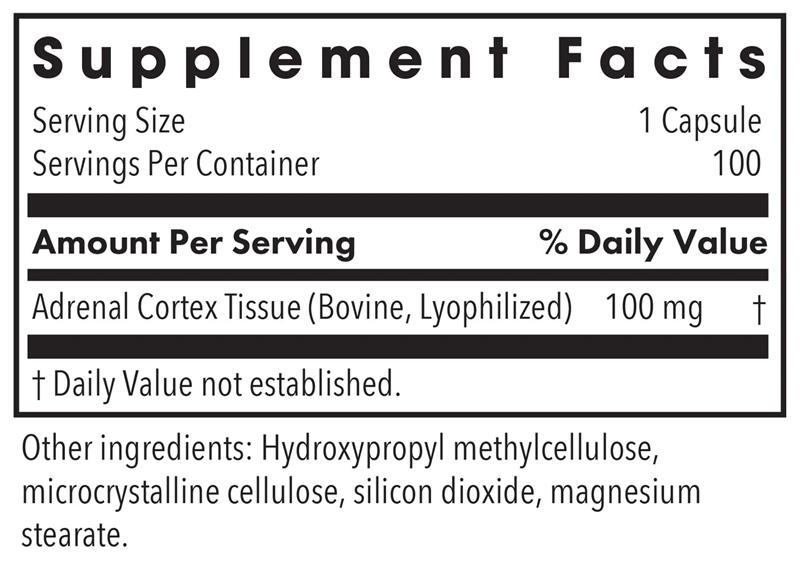 Supports the cortex portion of the adrenal gland. The adrenal cortex is the outer portion of the adrenal gland and is involved in the secretion of a variety of adrenal hormones, mainly cortisol.